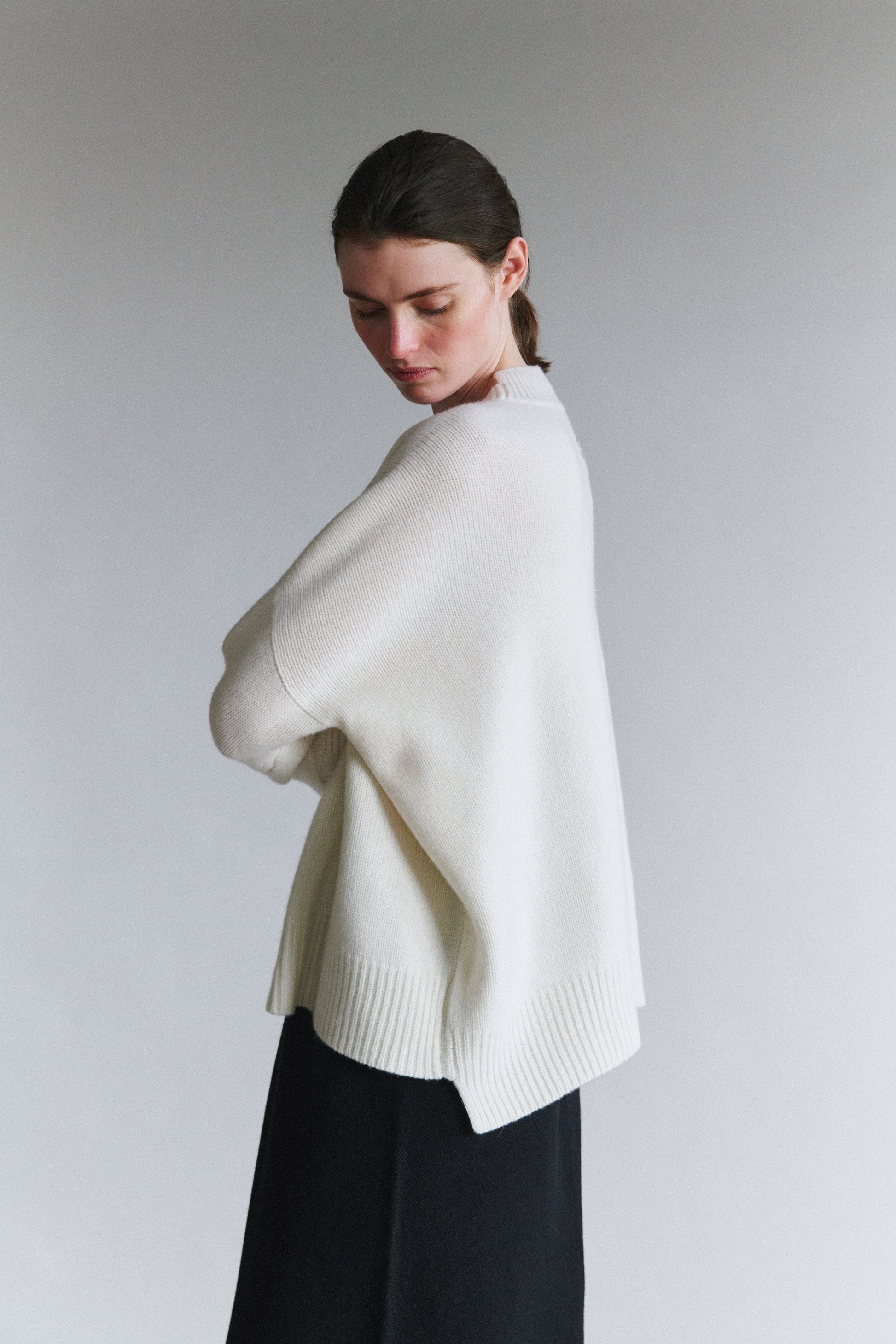 A best-selling style with stepped trim detailing and a generous oversized fit. Knitted in a chunky jersey stitch, this item comes in One-Size, is versatile, and can comfortably accommodate sizes ranging from small to large.100% Cashmere
