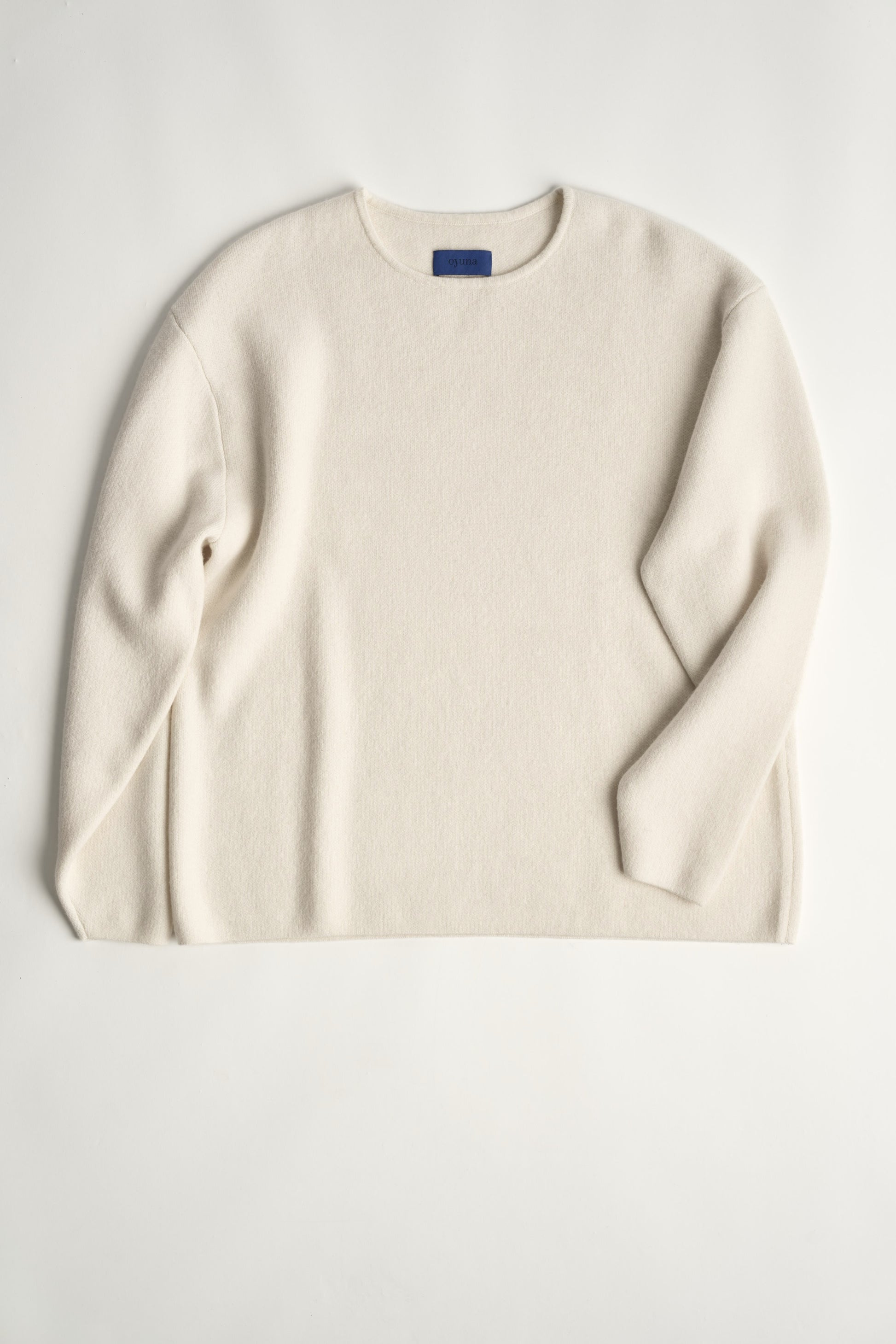 definitely one of our favourite pieces in our core collection. an oversized fit sweater with drop shoulders and sculpted, rounded sleeves, featuring modern clean trims and knitted in a structured jacquard stitch. style with our axeli cashmere trousers to complete the look.100% cashmere