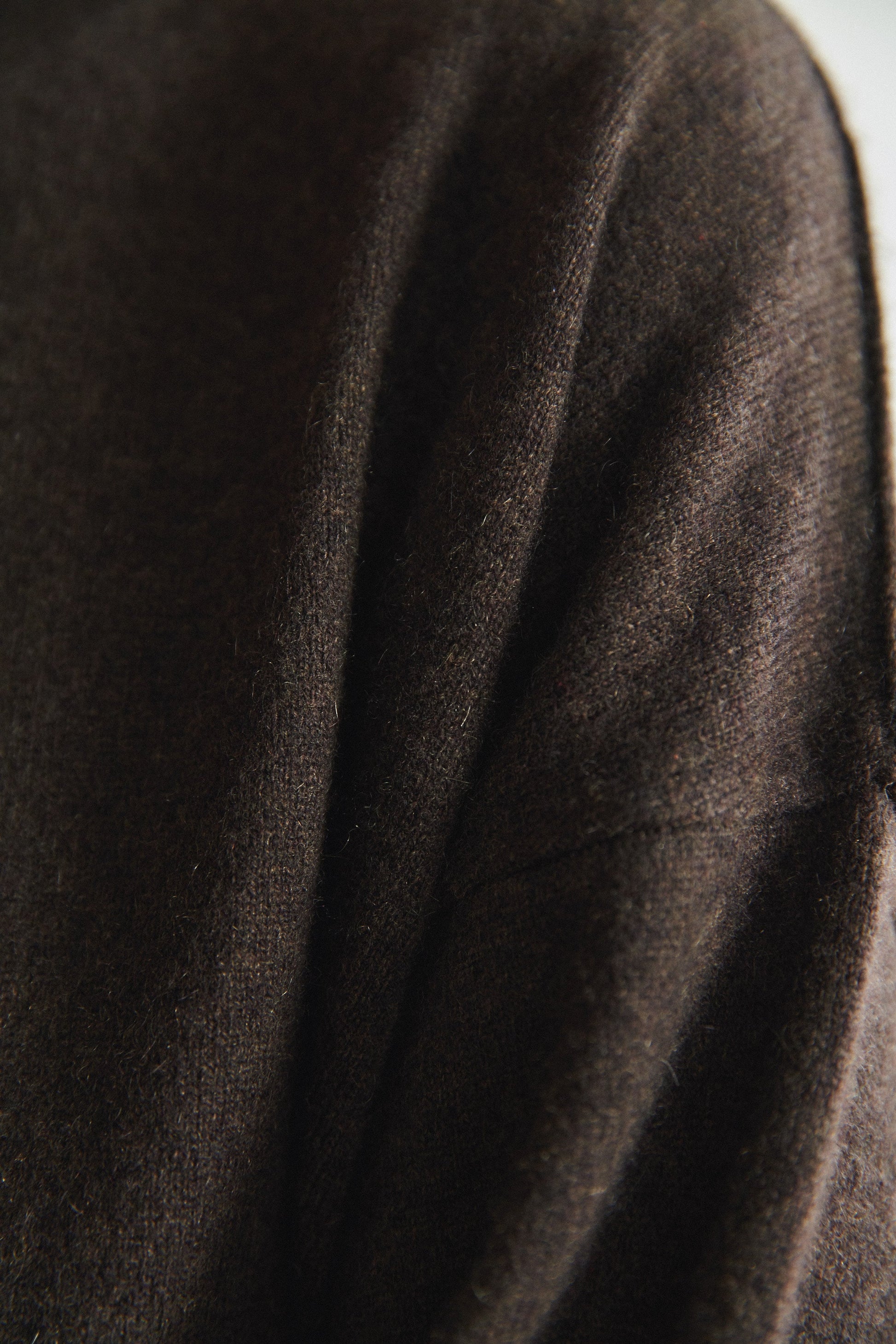 This seemingly ordinary high-neck sweater delivers that relaxed yet cool fit that is our signature. A classic jersey knit.100% Cashmere