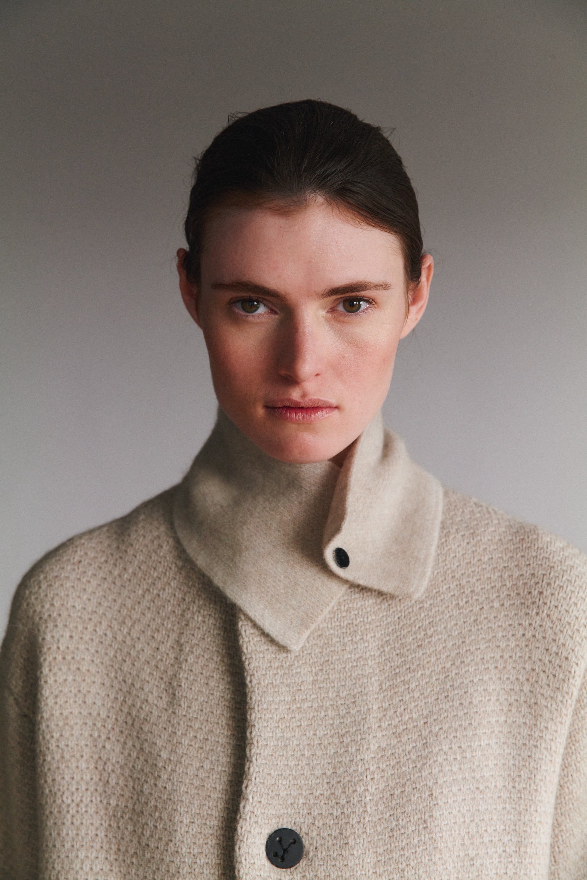 A neck snood in a slightly felted knit, finished with a button. We call it a 'neck friend' because it truly is that - warming and styling you at the same time. It turns your round-neck sweater into a turtleneck when worn indoors or keeps you warm when worn outdoors. Finished with a contrast colour edge line to give it more definition.100% Cashmere