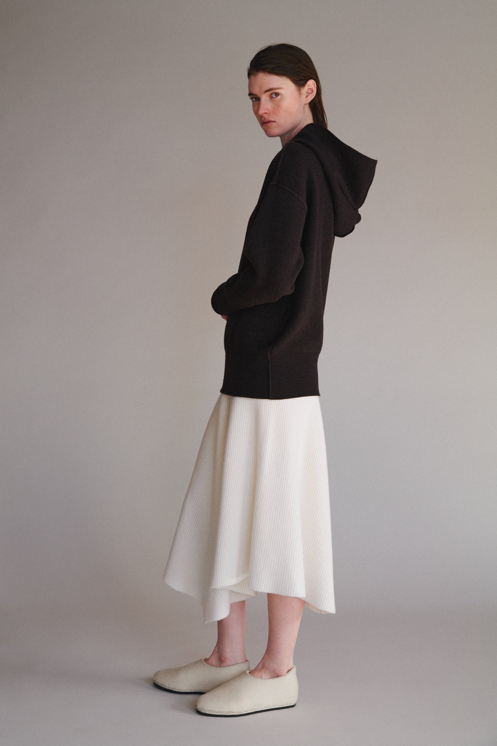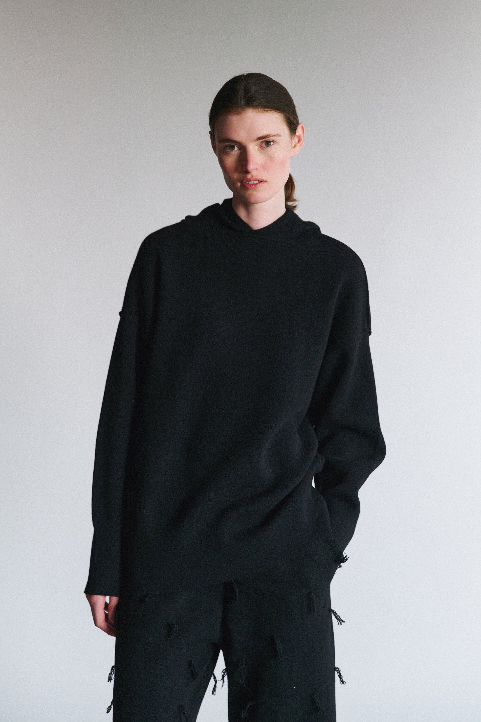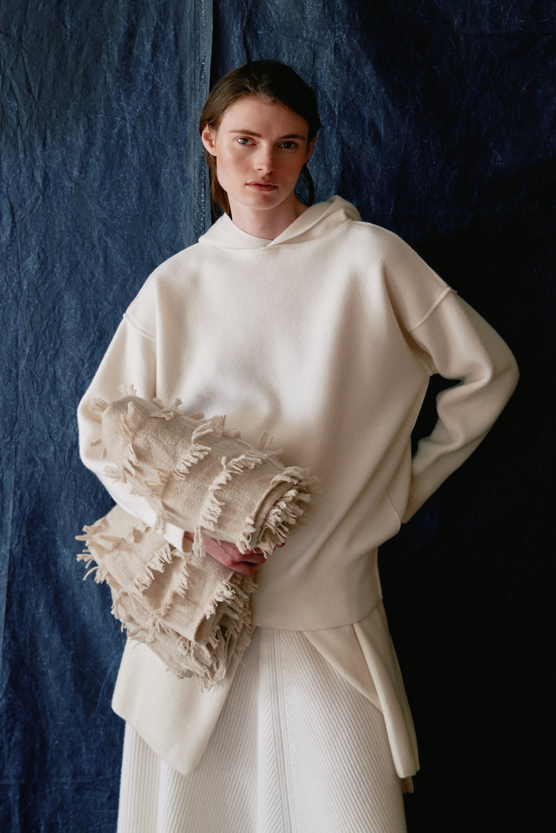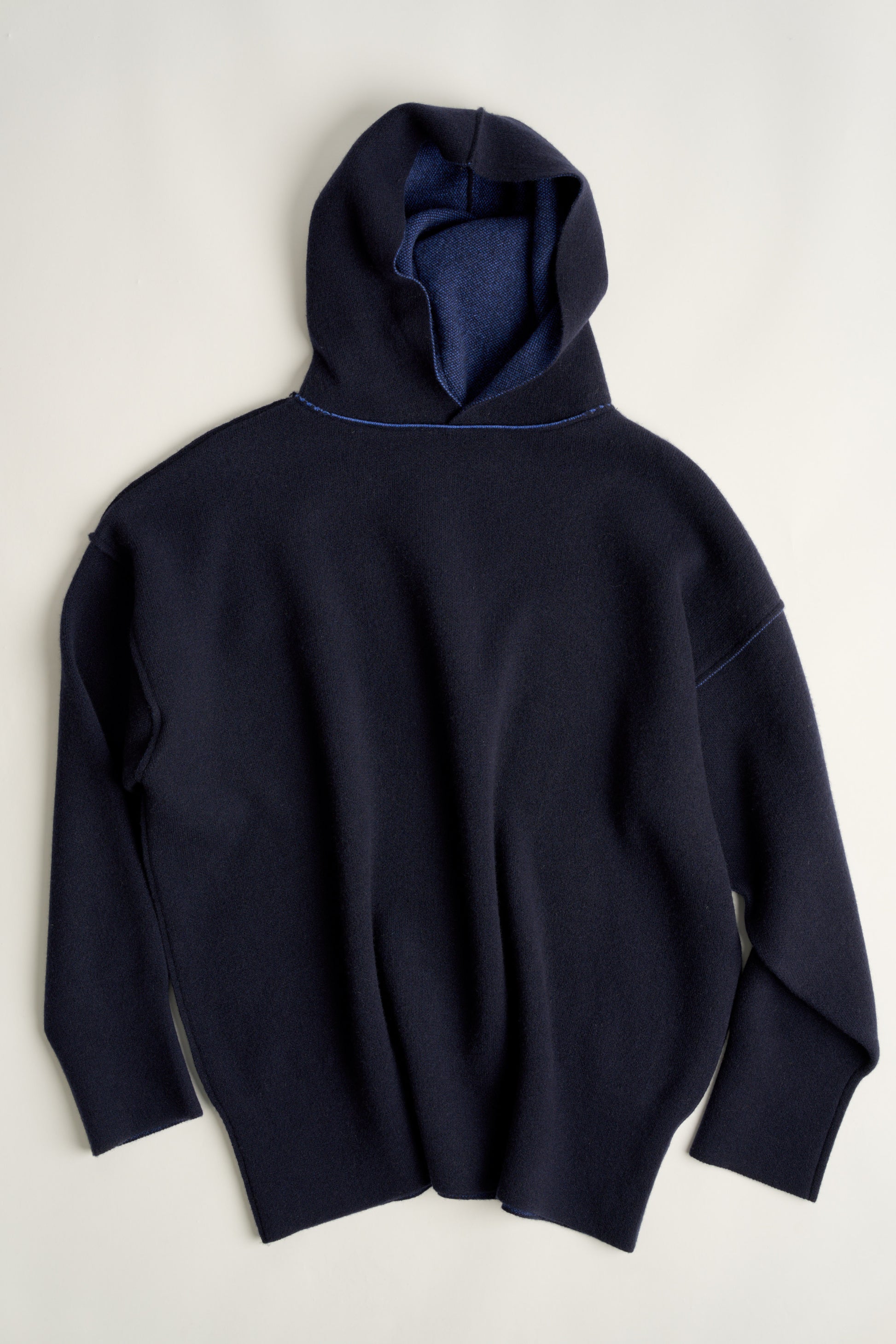This is the best cashmere hoodie we have ever come across. The quietly modern and clean look of this hoodie is enhanced with laser-sharp seam detailing. Fully reversible. This hoodie works very well on different-shaped bodies. It feels like a soft sculpted hug.100% Cashmere