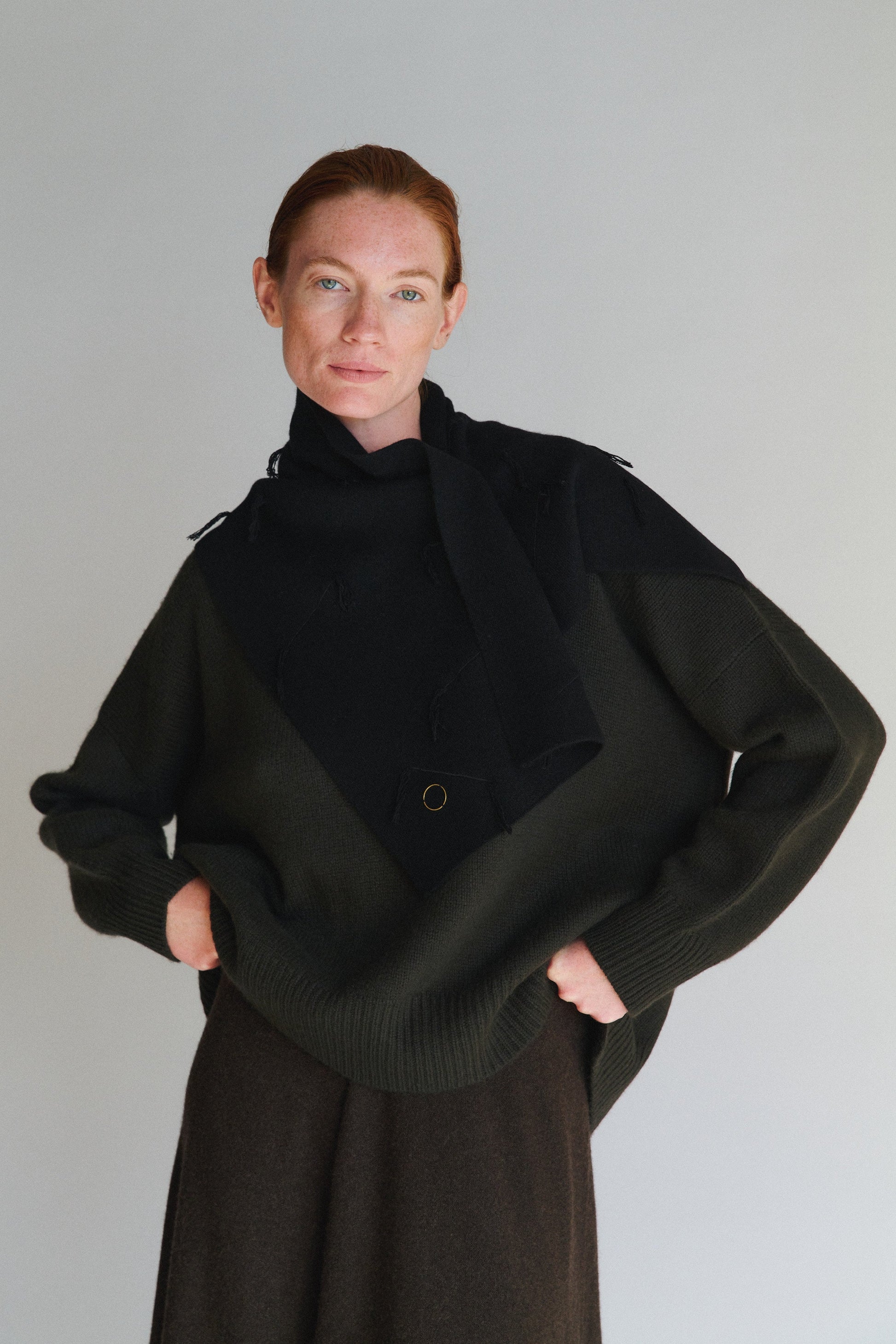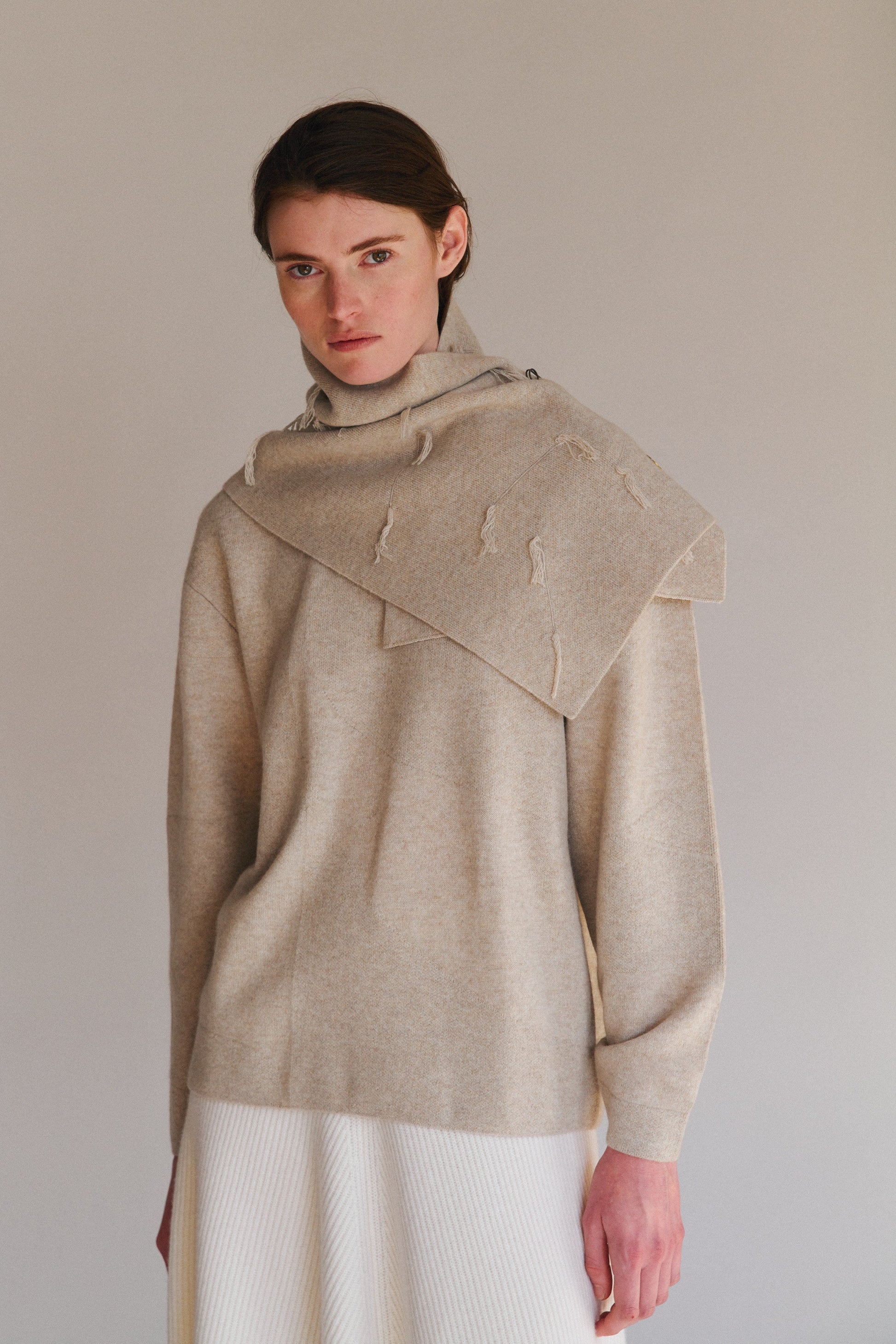 A jacquard-knit neck warmer featuring our signature fringe-textured detailing. It provides both warmth and a distinctive styling element. Perfect for layering, it pairs effortlessly with sweaters, coats, or jackets.100% CashmereDimensions: 100x30cm / 39x12"