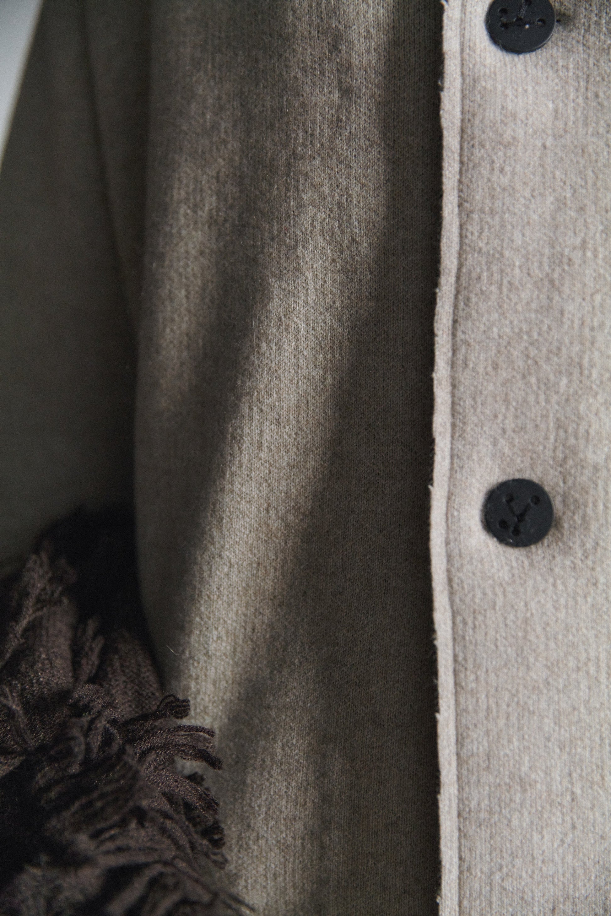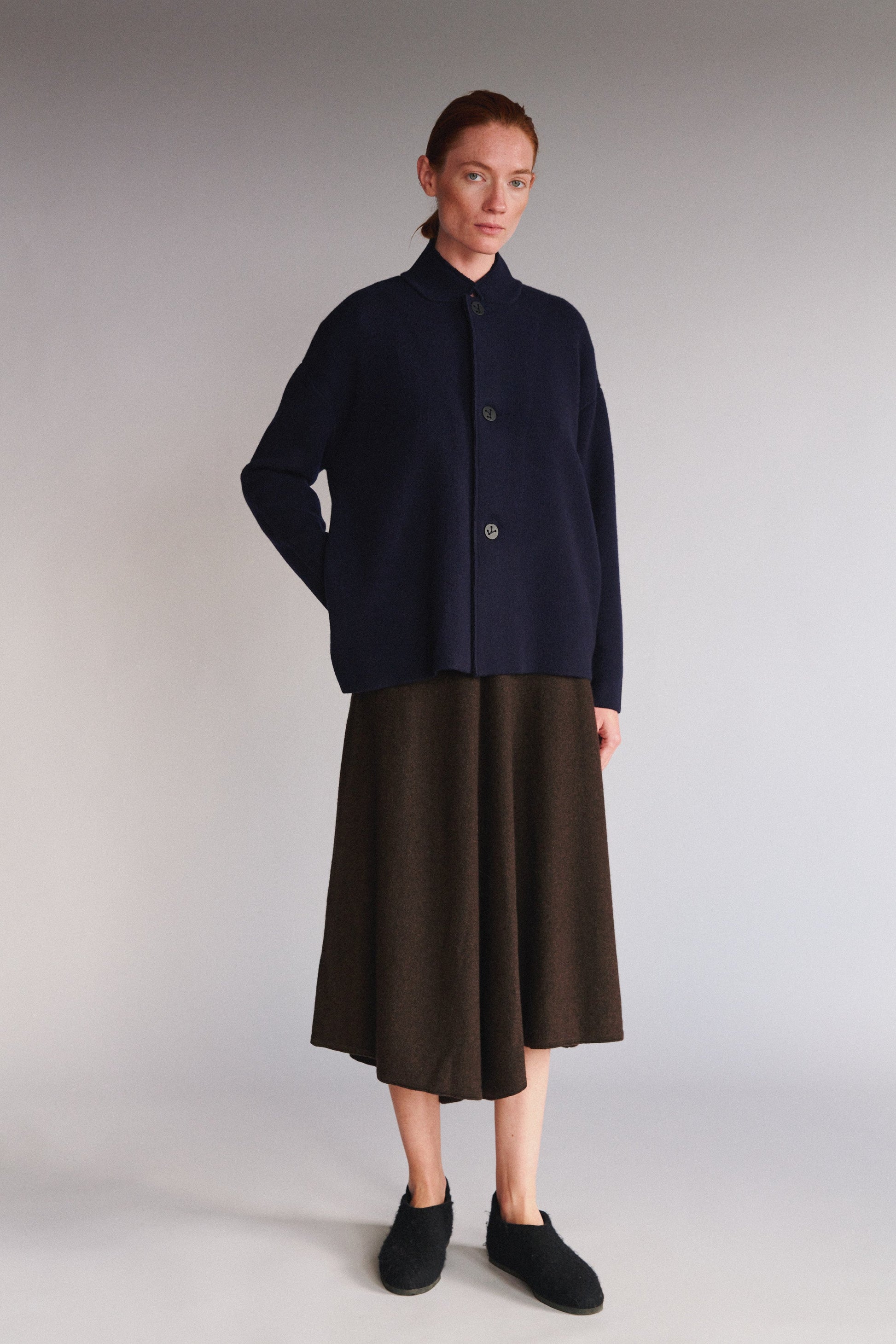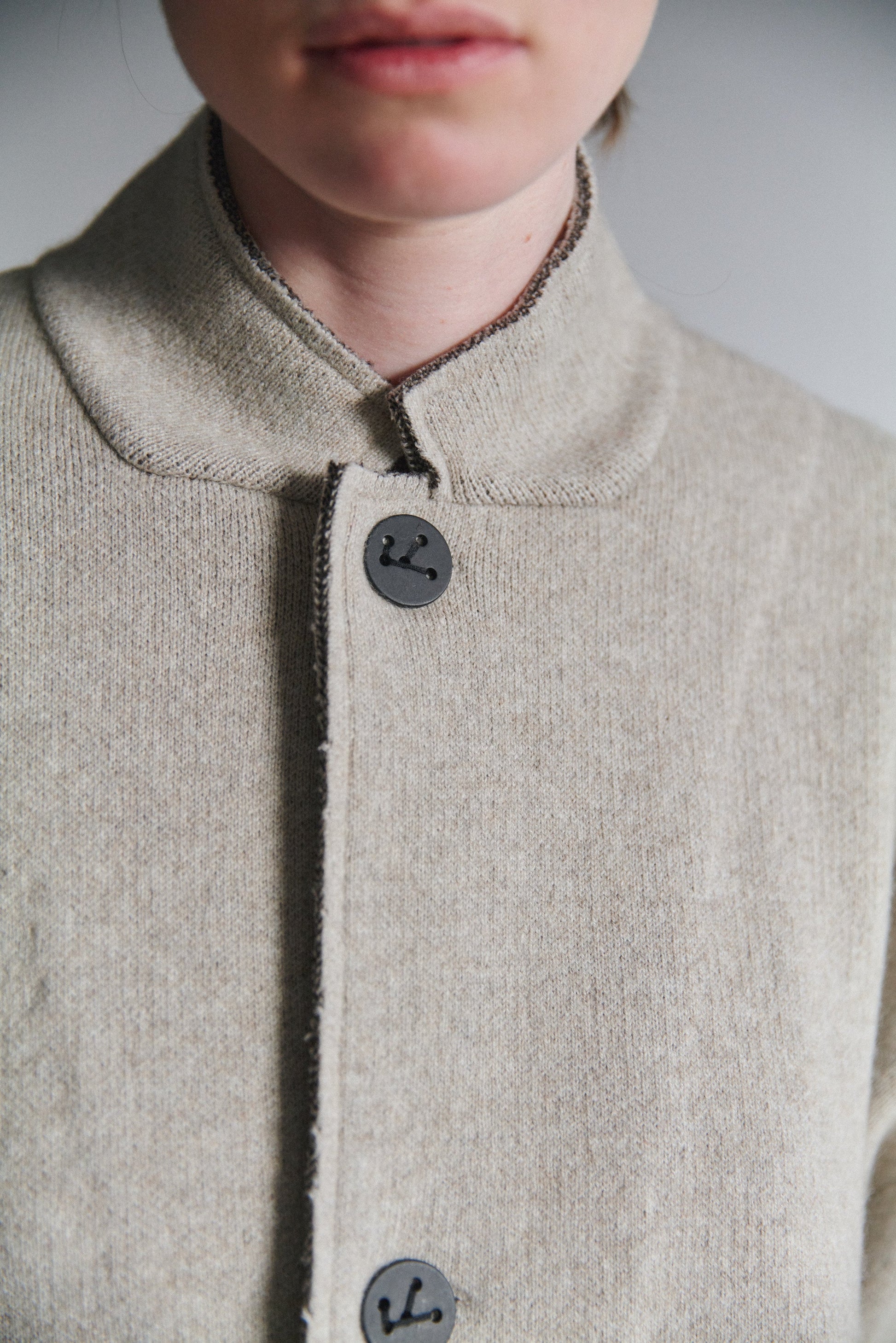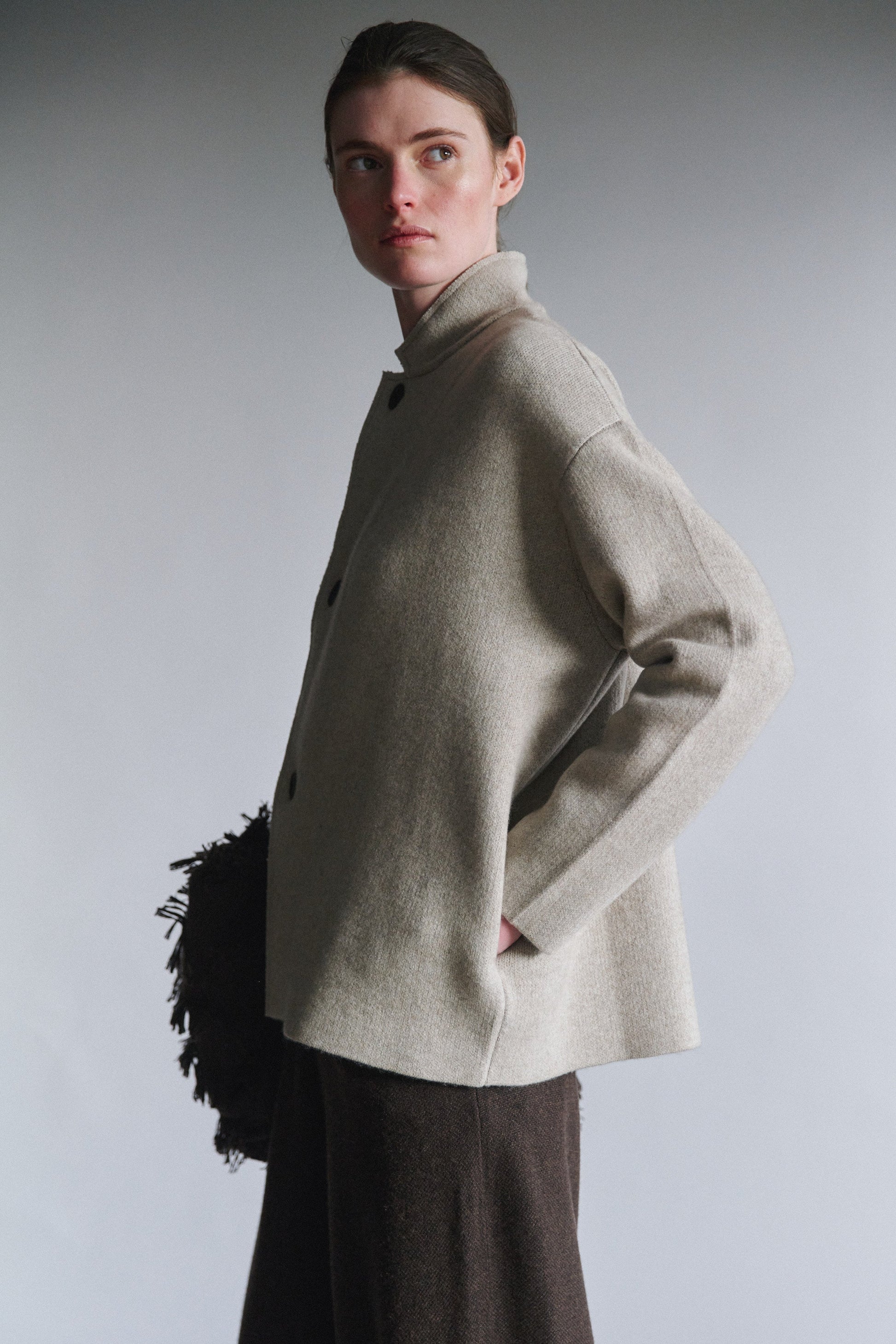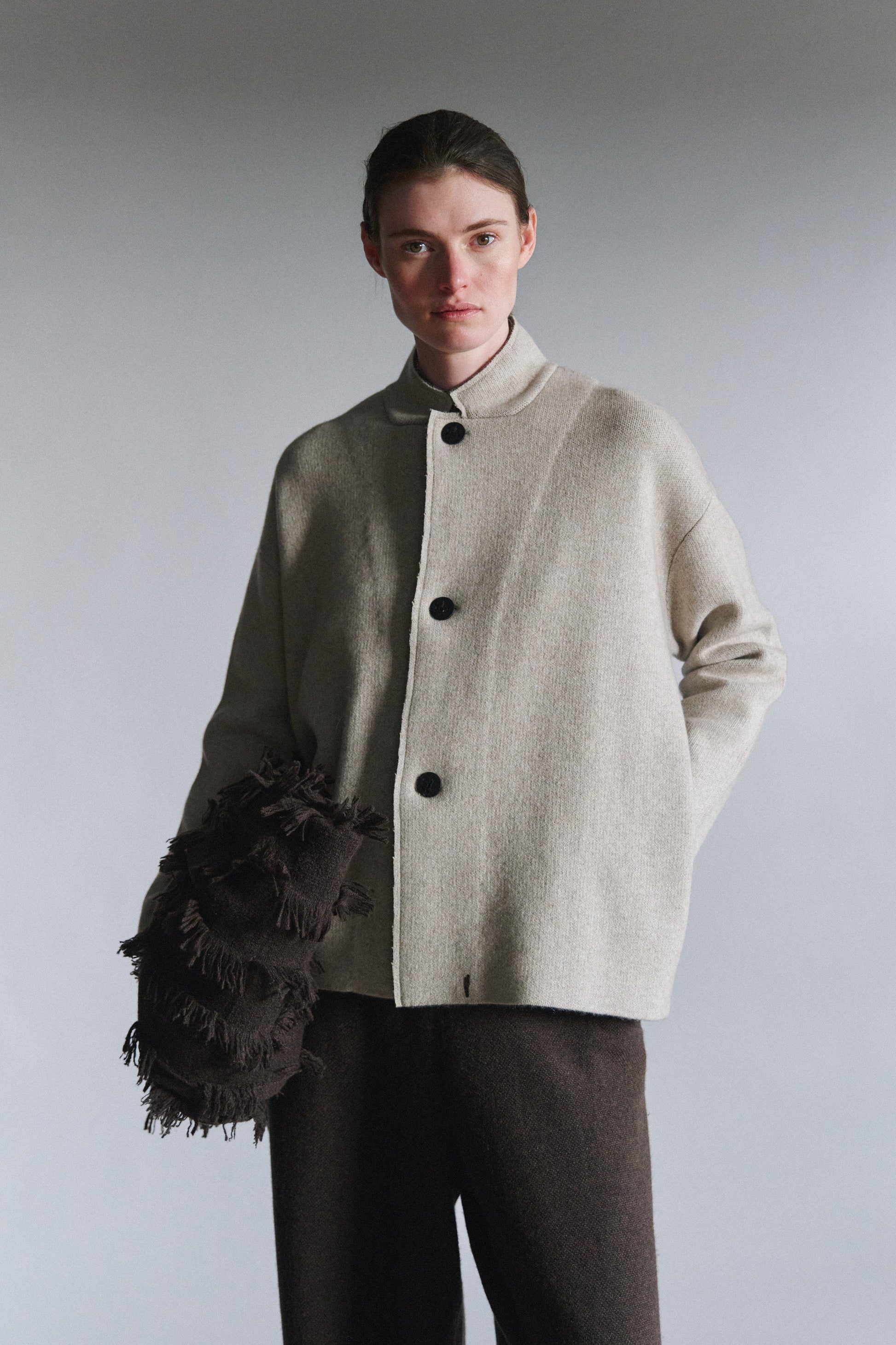 Our core collection relaxed-fit jacket with a stand-up collar, featuring oyuna signature buttons and welt pockets. Knitted in a structured jacquard stitch, this jacket is a practical yet stylish piece for everyday use and most seasons.100% Cashmere
